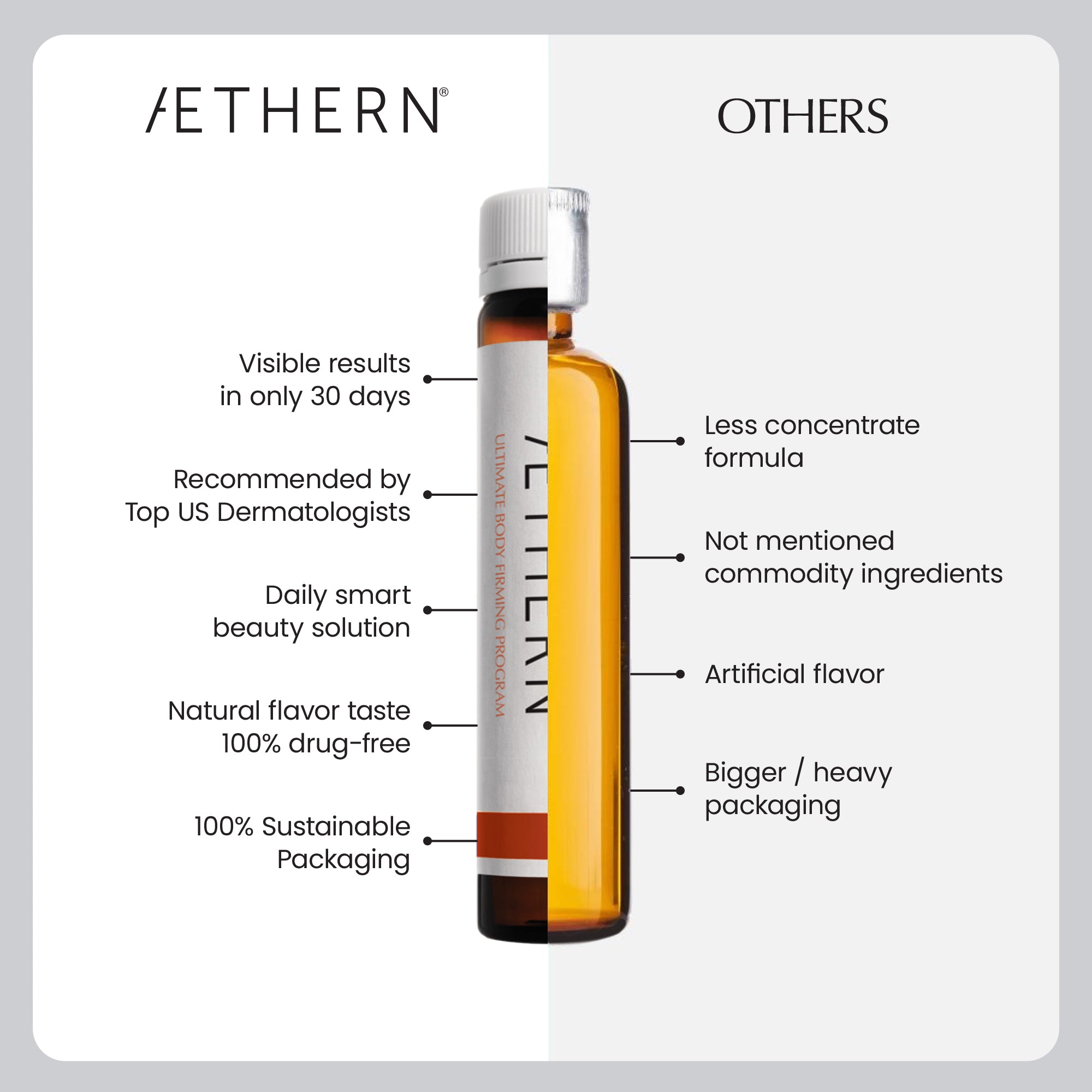 Visible results begin in just four weeks. With consistent use, AETHERN Ultimate Body Firming Program reveals a more toned, sculpted, and radiant silhouette—enhancing its effects over time for lasting transformation.